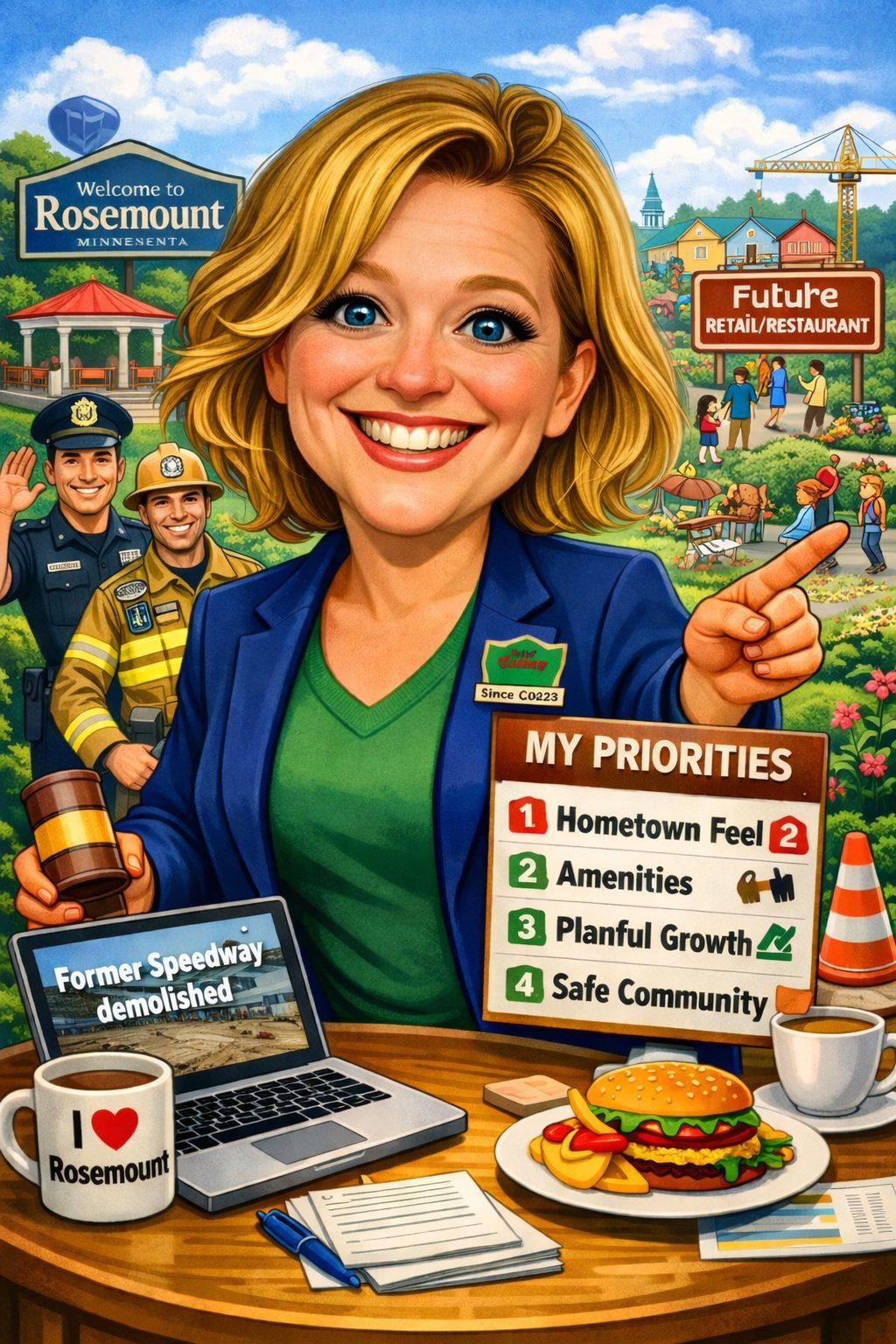 I have been a member of the Rosemount City Council since February 2023, serving my friends, neighbors, residents and the local business community. As a mother, local volunteer, long-time professional, and Dakota County business owner, I bring empathetic perspectives and pragmatic outlooks to the issues facing our growing hometown.